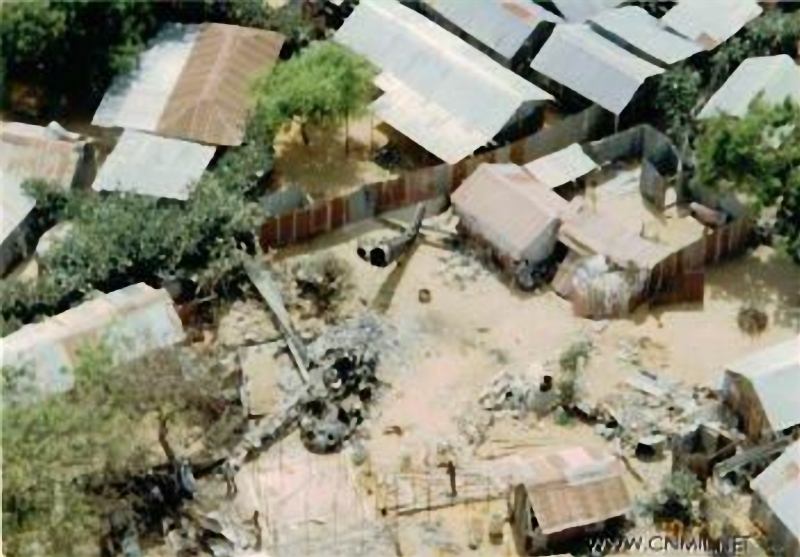 這名新槍手的射擊技術很高,牽制班長和戰地急救衛生員無法從建築物脫身。 此時,已經有兩名受傷士兵躺在擔架上,還有兩名急需擔架,八名士兵腿部受傷。 援助迫在眉睫。 我大聲命令無線電操作員與C連聯絡,向連長報告我們的處境,要求迅速轉移。 我被告知馬來西亞人正在行進途中,一架「小鳥」直升機(特種作戰AH-6直升機,裝配2.75英吋火箭彈、兩挺7.62mm米尼崗機槍和近戰支援武器平台)已經到位。