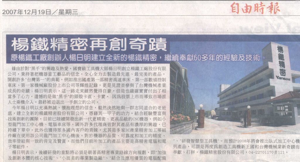 這是楊日明先生經歷多次楊鐵危機後,深切體認穩健經營的重要。楊日明見證台灣機械產業一甲子的發展史,對機械始終難以忘懷。這次(2007年)雖以「新兵」之姿重新站上舞台,但他擁有雄厚研發實力,加上對產業的熱情,並不輸其他後起之秀。